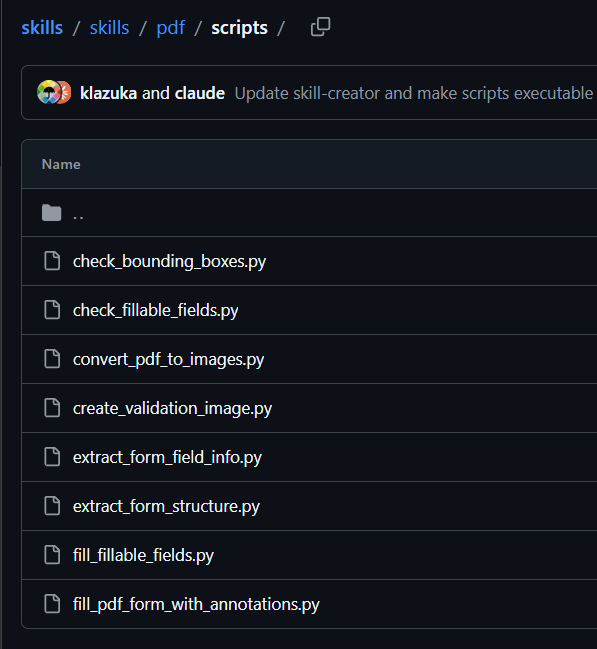 One important thing to note for later, there are the actual task-specific instruction documents and scripts which shows the commands being run, as well as the SKILL.md which is a markdown file which shows, at a glance, what this skill does and how it works.